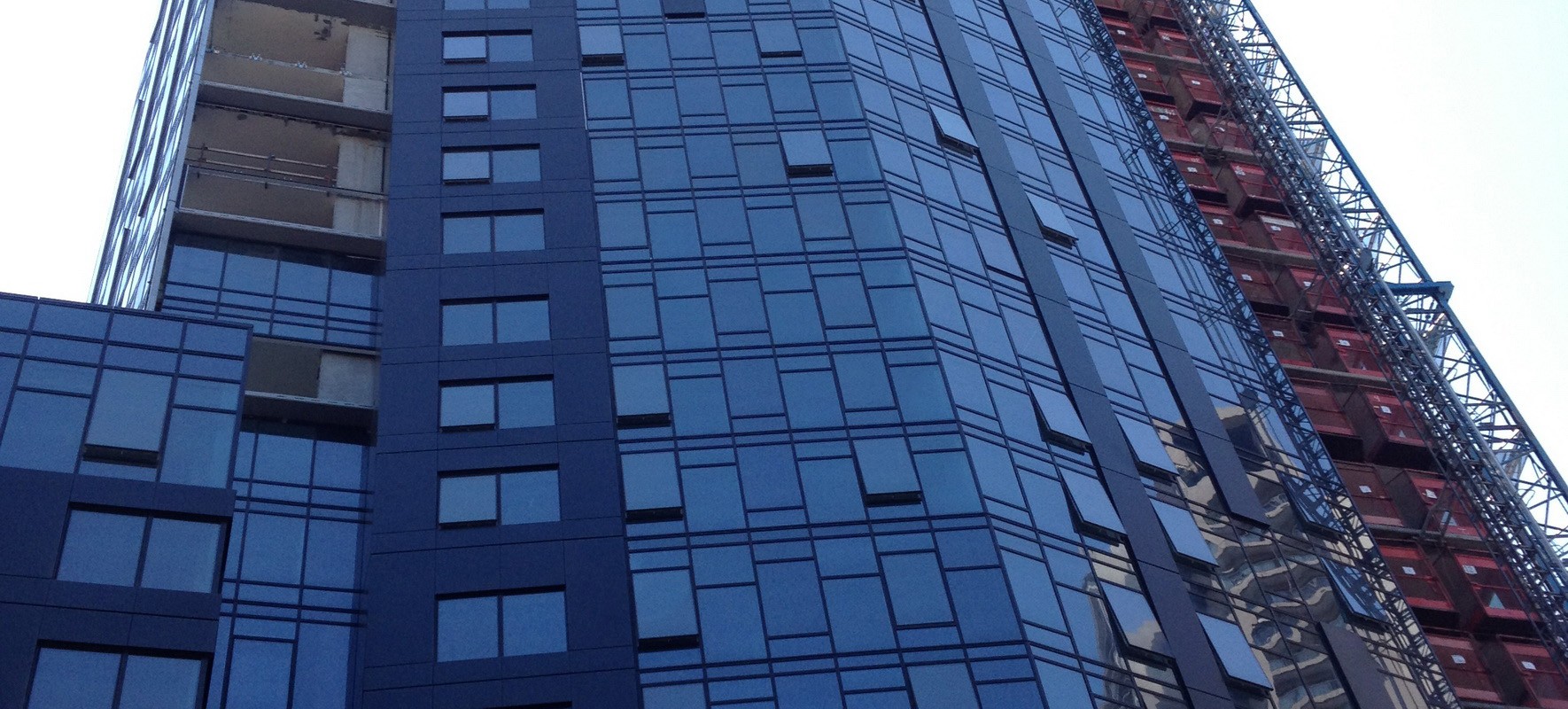 To efficiently clad the exterior of this multi-tower project, a variety of wall systems were explored. The building's design called for vision and spandrel glazing interspersed with areas of opaque appearance. To minimize the number of interface details and facilitate construction scheduling, WJE proposed the development of a single, pre-fabricated, unitized curtain wall system with various infill panels. This allowed for simplified construction sequencing, elimination of system interface details, and single-source responsibility.
