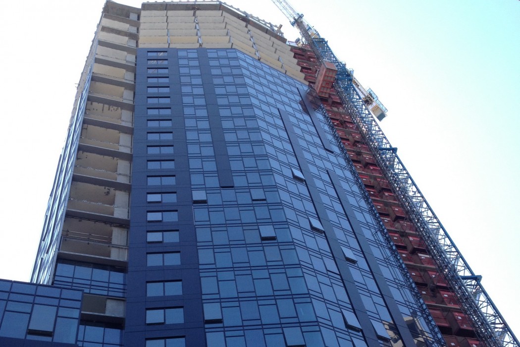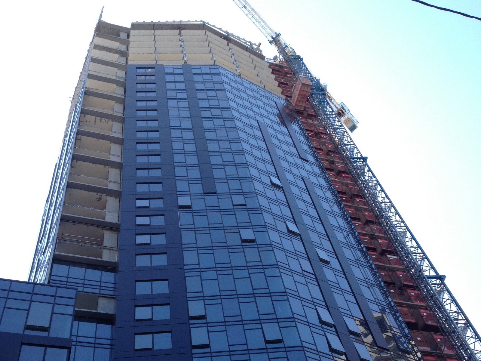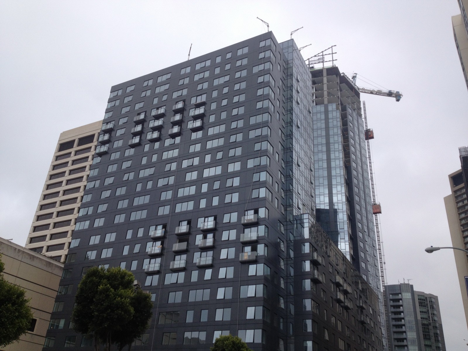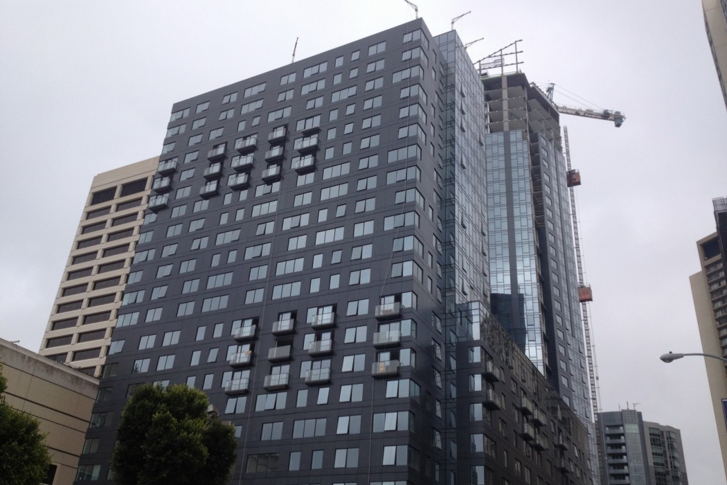 Part of the redevelopment of the "Mid-Market" neighborhood, this project consists of 37- and 24-story towers linked by 11- and 15-story midrise sections. The overall project size is approximately 900,000 square feet, which includes about 750 apartment units and 6,000 square feet of retail space. Parking is accommodated with a below-grade garage. The building's exterior is clad with unitized aluminum curtain wall framing with vision glass, spandrel glass, and metal panel infills. WJE also consulted on the building's operable windows, sliding glass doors, and glass balcony railings, as well as cement plaster (stucco) cladding at roof penthouses. The building is designed to achieve LEED-Silver certification.