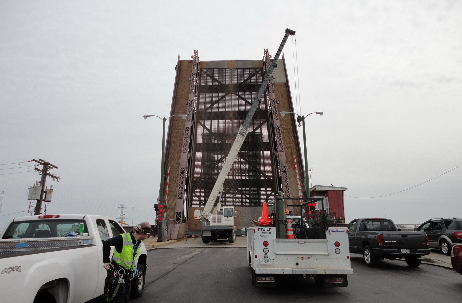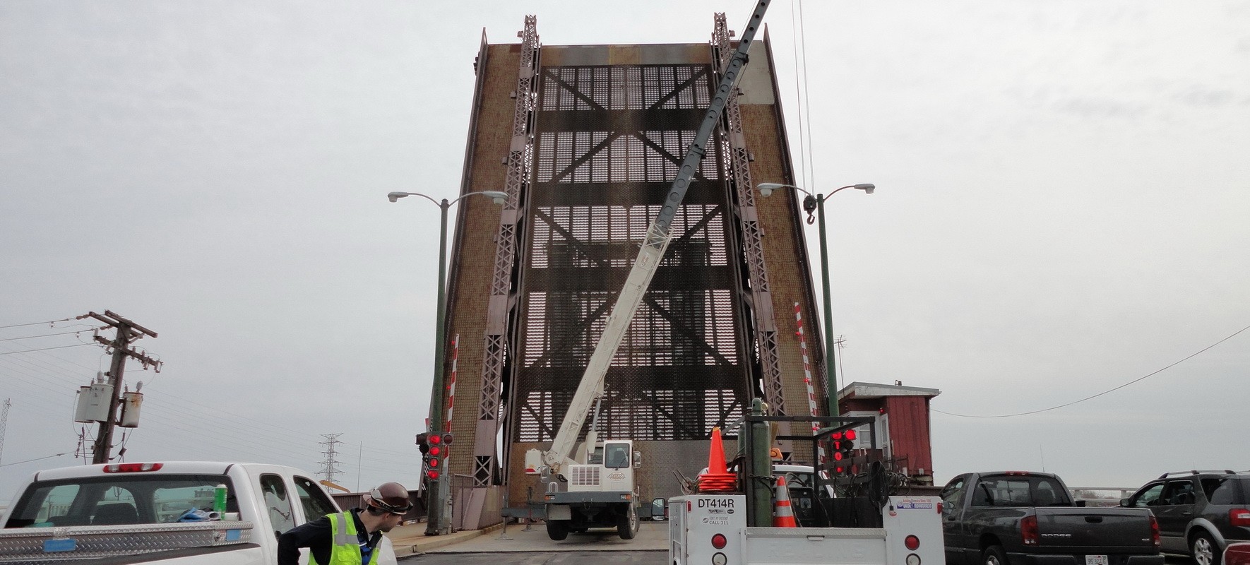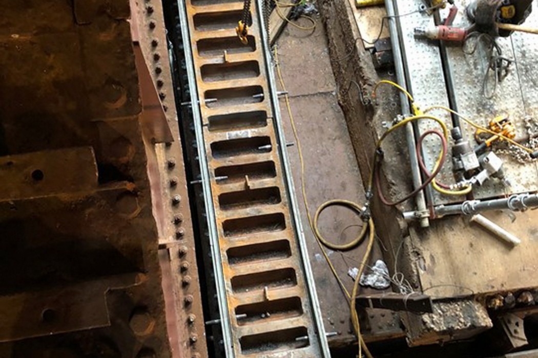 A precision survey and other field measurements were performed prior to each repair project to determine the position of the bridge trunnions, racks, pinions, and pinion shafts. A mechanical review was carried out to evaluate various options to address the machinery misalignments and to improve the functionality of both rack and pinion systems on the west leaf. The team provided drawings and specifications for both projects.
