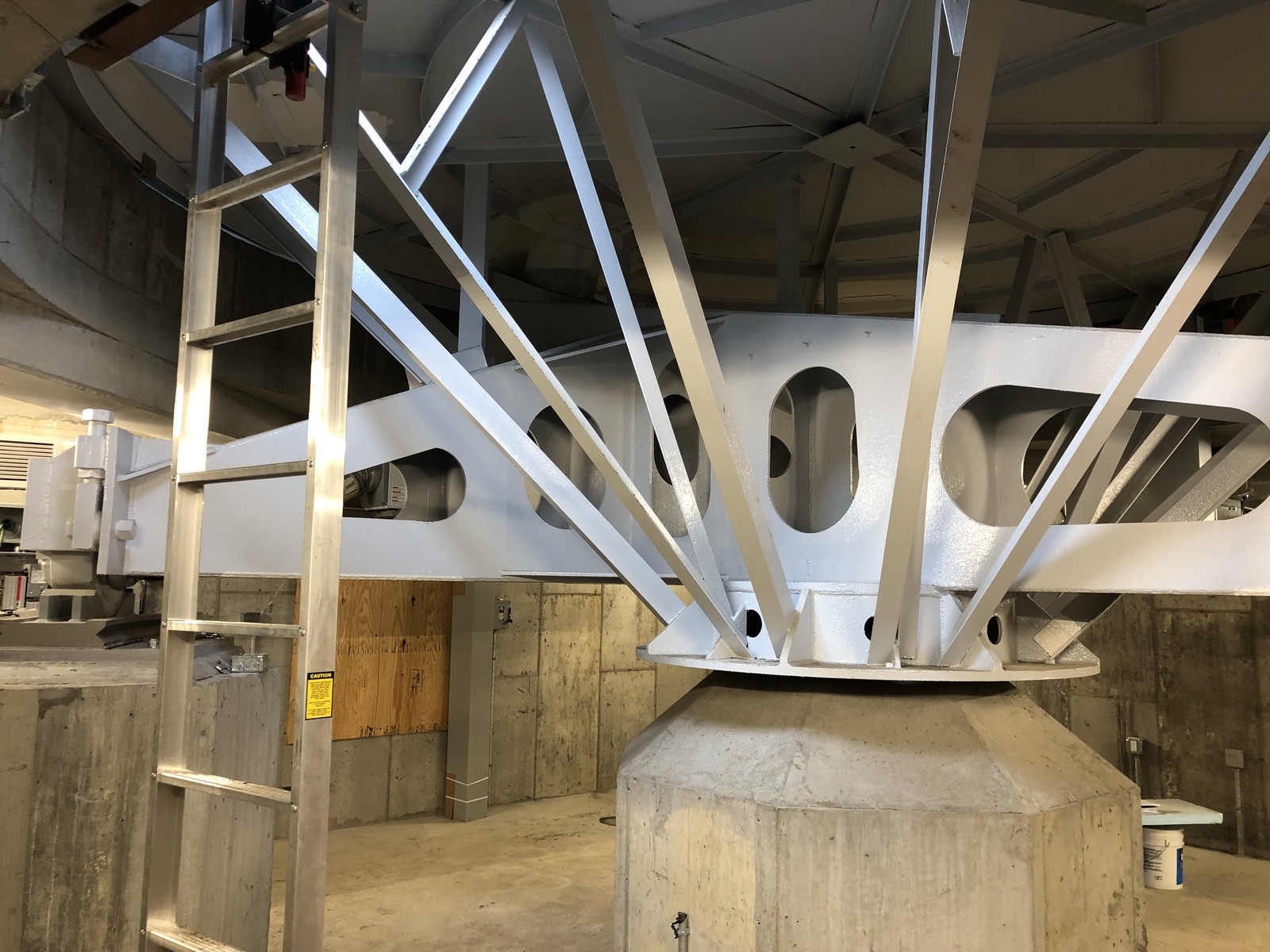 WJE performed a mechanical inspection to assess the existing condition of the globe machinery, developed a recommended scope of work to rehabilitate the globe to restore operation, and provided budgetary cost estimates for completing the rehabilitation. The inspection and subsequent investigation determined that the root cause of the lower bearing failure was improper selection of the bearing type (spherical roller bearing used in an axial thrust application) and inadequate lubrication. WJE developed a rehabilitation design that replaced the original lower bearing with a new spherical roller thrust bearing (SRTB).