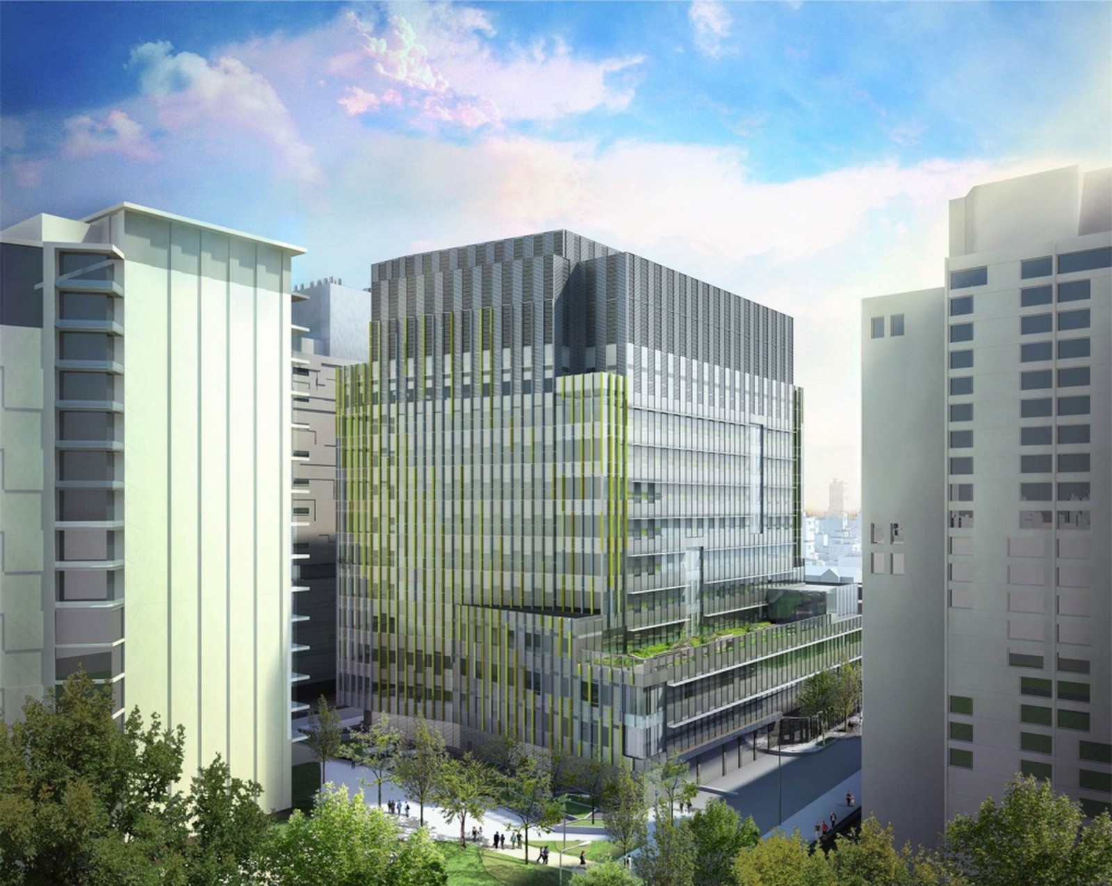 The building will be 358,000 square feet, have ten stories of new hospital space, and four stories of underground parking on the old Massachusetts Mental Health site.