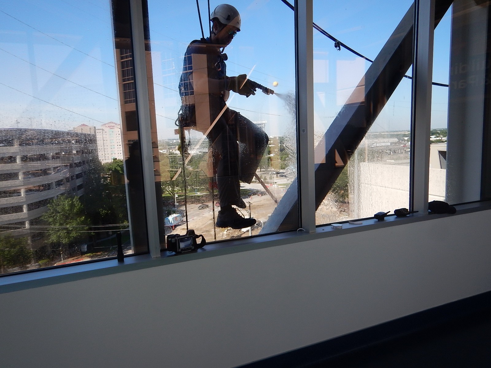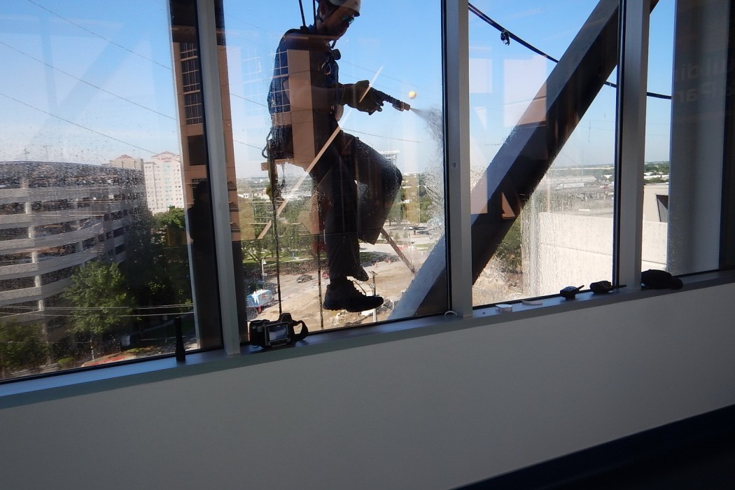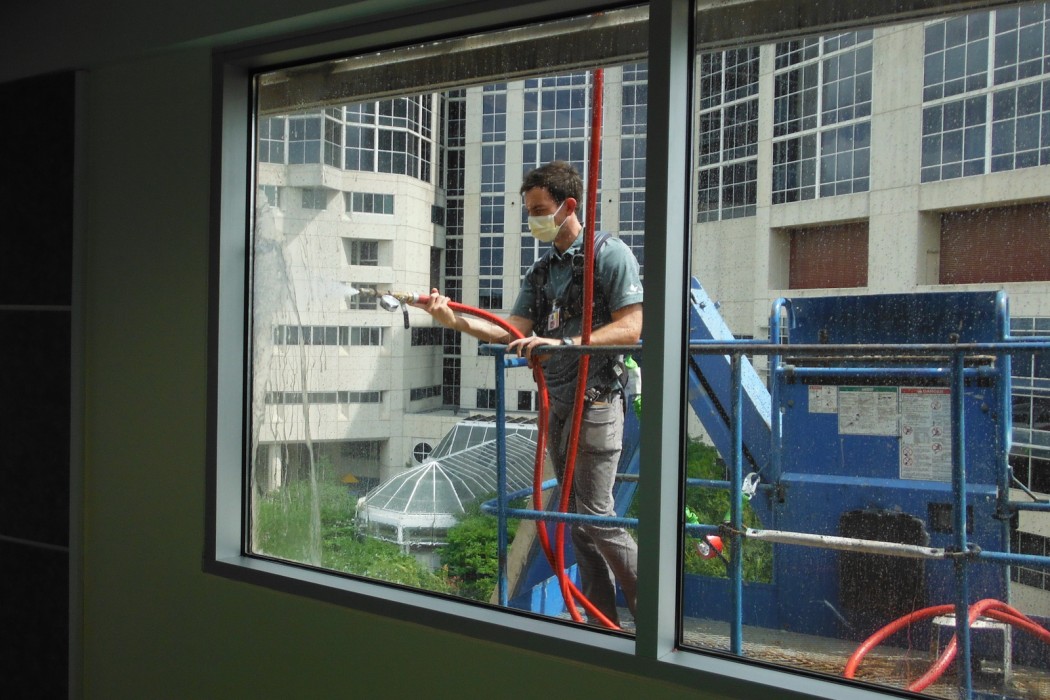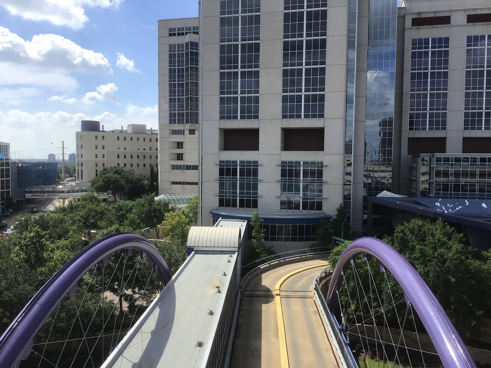 At the skybridges, WJE performed a condition assessment and water intrusion investigation at each skybridge. The condition assessment included both interior and exterior visual observations of each skybridge. Up-close exterior observations at Skybridges A and B were made by WJE’s Difficult Access Team, who accessed the facades using the specialty rail system.