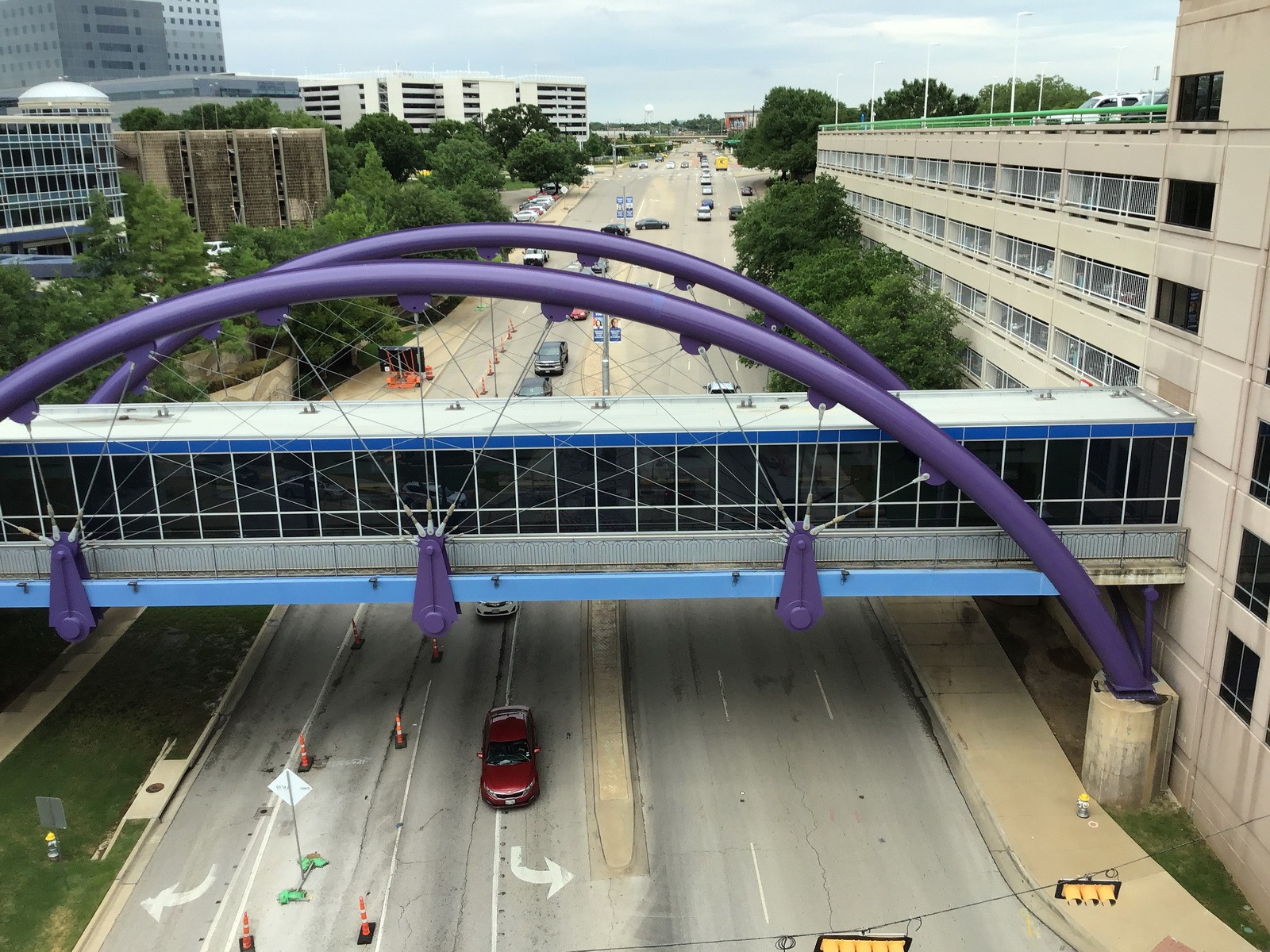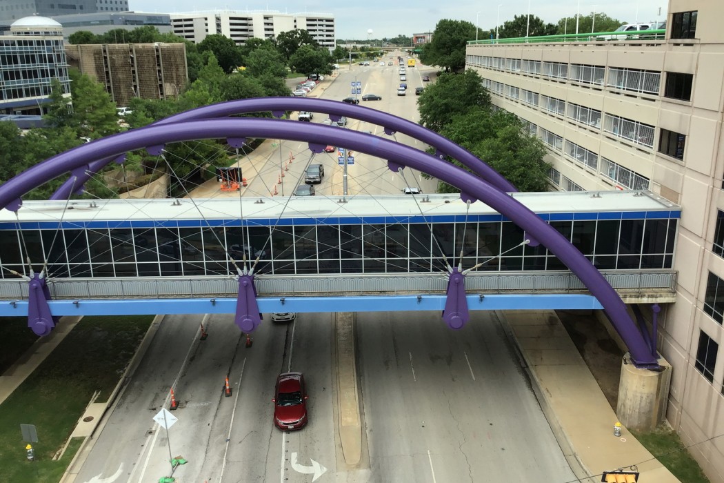 The CH campus also contains  skybridges to facilitate pedestrian foot traffic across roadways and train tracks. The three skybridges involved in WJE’s investigation were constructed between 2003 and 2007, with lengths between 185 and 240 feet. Each bridge features aluminum-framed windows and metal wall panels.