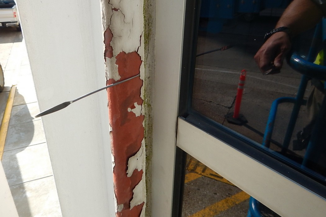 At the Bright Building, WJE performed an overall inspection with up-close observations of the facades as well as isolated water testing at known leak locations. Testing was conducted at four general areas that corresponded with previous reports of water intrusion.