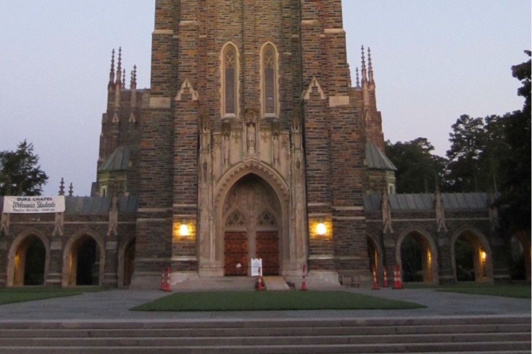 Duke University Chapel, the ecumenical center for religion on campus, was designed in the late 1920s by Julian Abele of the Philadelphia firm of Horace Trumbauer. The vaulted ceiling system is comprised of a series of stone ribs that form a series of vaulted framing bays centered on the stained glass windows in the exterior walls of the chapel. Between the stone ribs is a Guastavino vaulted ceiling system that is supported on the stone ribs. The stone ribs are comprised of carved stone pieces with a mortar joint between each piece and circular keystones located at the crown of each vault, between adjacent vaults, and at each window.