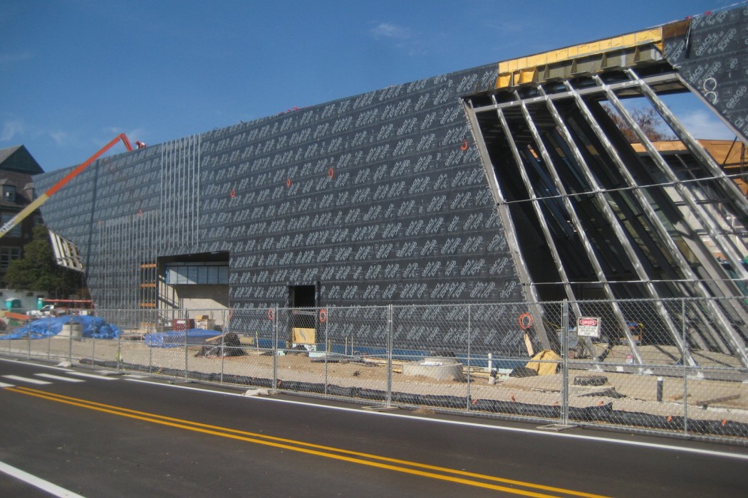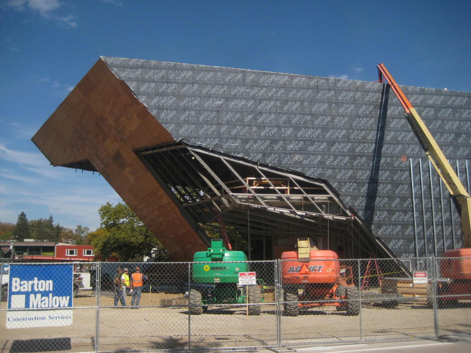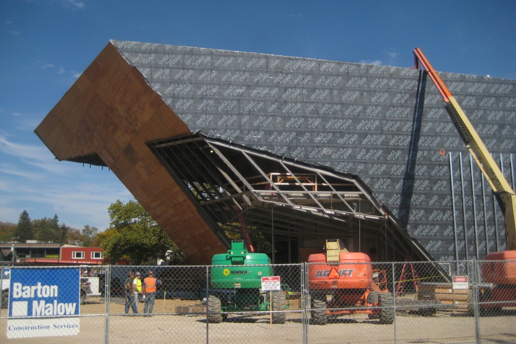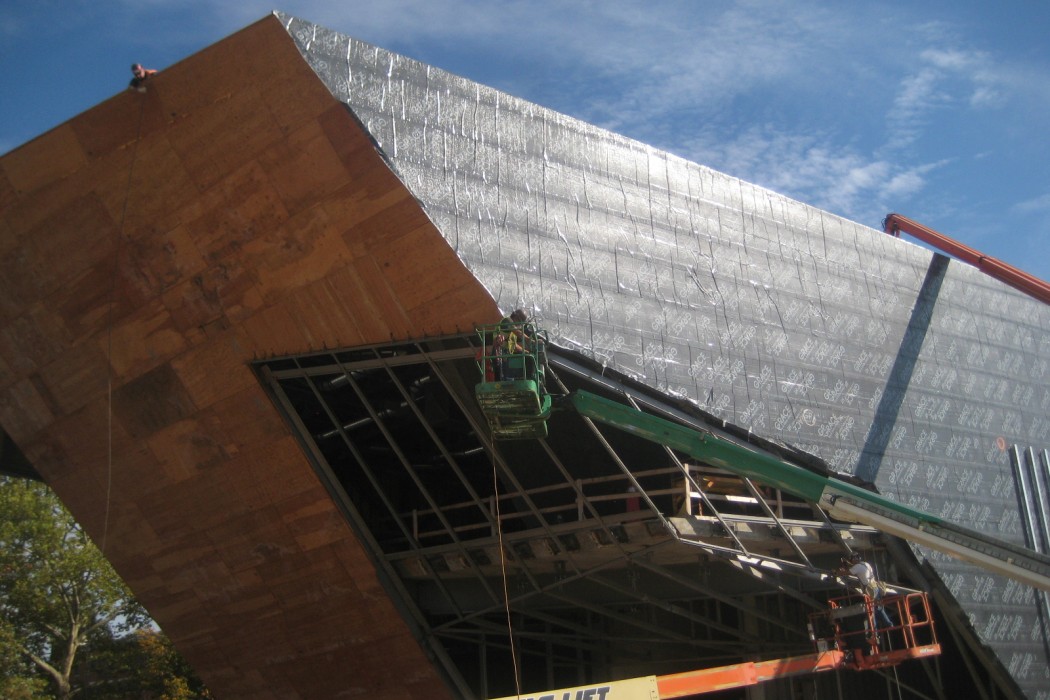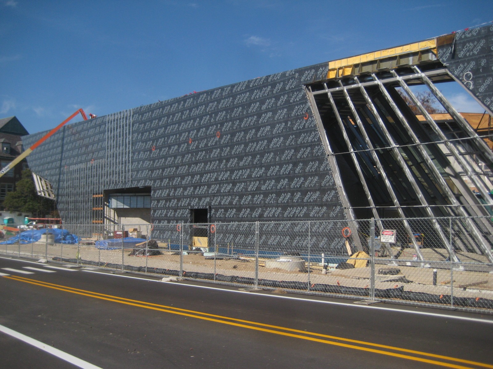WJE provided peer review comments prior to construction of the enclosure and reviews of contractor submittals. WJE's focus during these reviews was the integration of the various enclosure systems to achieve continuous thermal, air, and moisture barriers at the exterior walls and roofs. Barton Malow, IDS, and WJE worked collaboratively during the early phases of construction to refine details and establish an agreed-upon construction quality control program. Periodically throughout construction, WJE performed milestone site visits to observe and document the building enclosure work in progress and to conduct performance testing on the various assemblies. Extensive testing of the enclosure was performed, particularly at the glazing assemblies, for evaluation of air and water infiltration resistance.