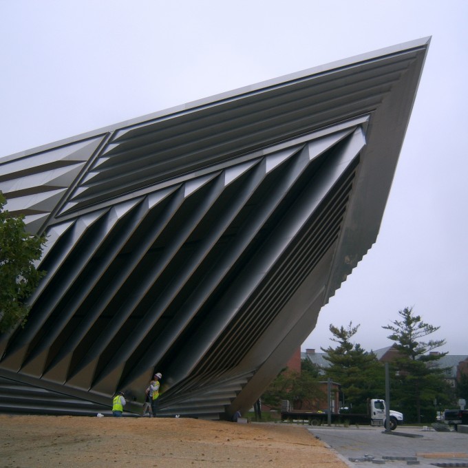 WJE was retained by the construction manager, Barton Malow, to assist in the development of details for the building enclosure and to establish a program of performance testing. The owner's Project Requirements outlined the importance of preventing unanticipated air and moisture flow to/from the controlled interior environment of the new art museum. The unique building was designed by Zaha Hadid with construction documents developed by the architect of record, Integrated Design Solutions (IDS).