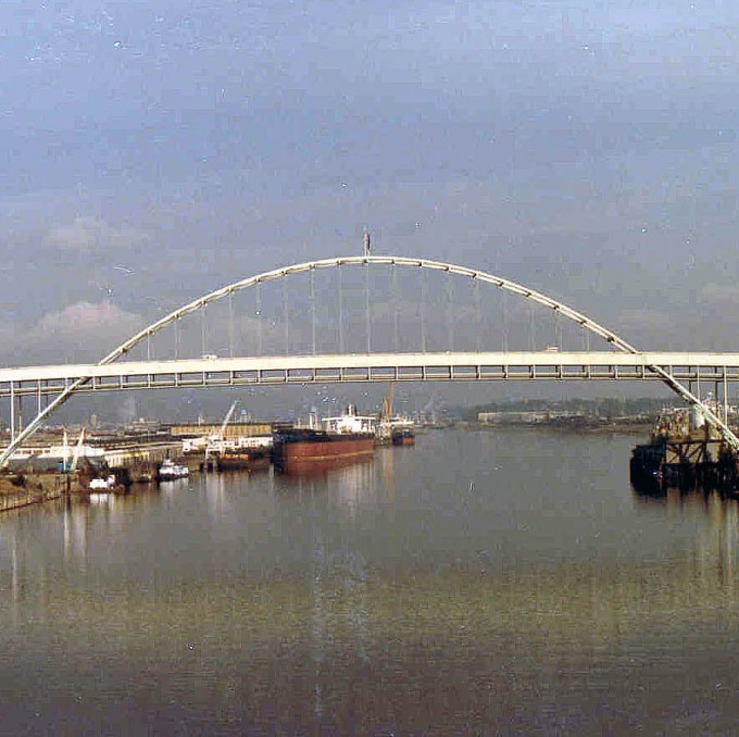 WJE engineers conducted a fatigue and fracture study of the tied arch structure. The primary objectives included an arm's-length, in-depth inspection of all fatigue sensitive details in the tie girders, a detailed inspection of the lower deck framing members, ultrasonic testing of bearing pins and hanger links and approach ramp hanger pins, magnetic particle testing of selected areas, fractographic examination, measurement of the existing load in the suspender cables, visual inspection of all approach roadway pot bearings, and an assessment of retrofitted conditions.