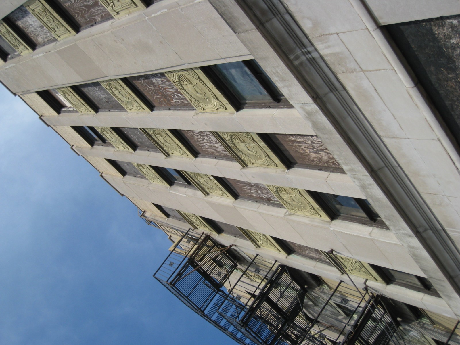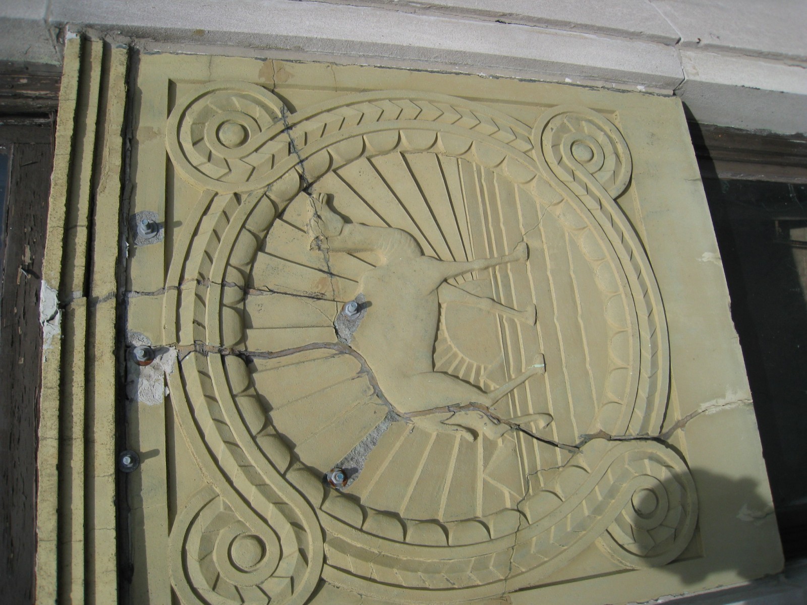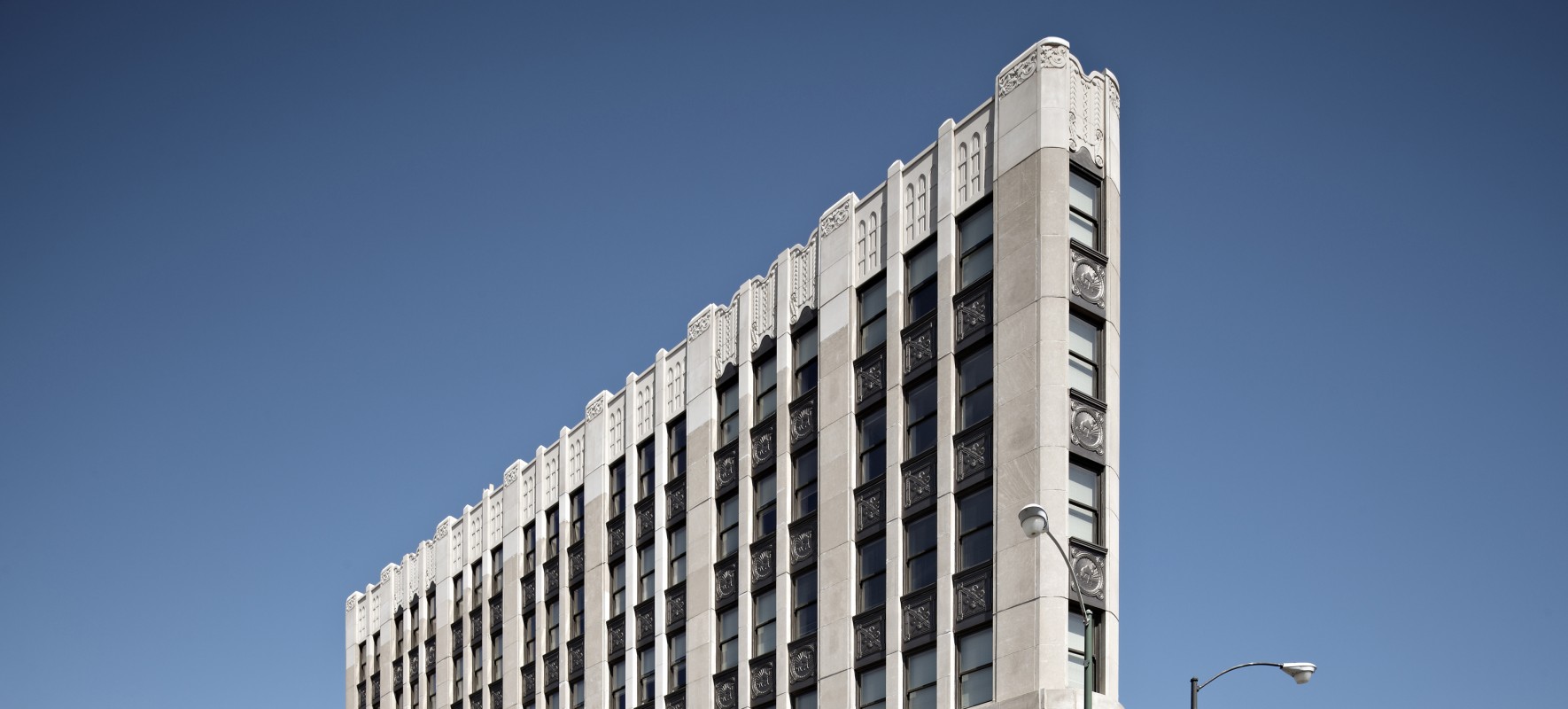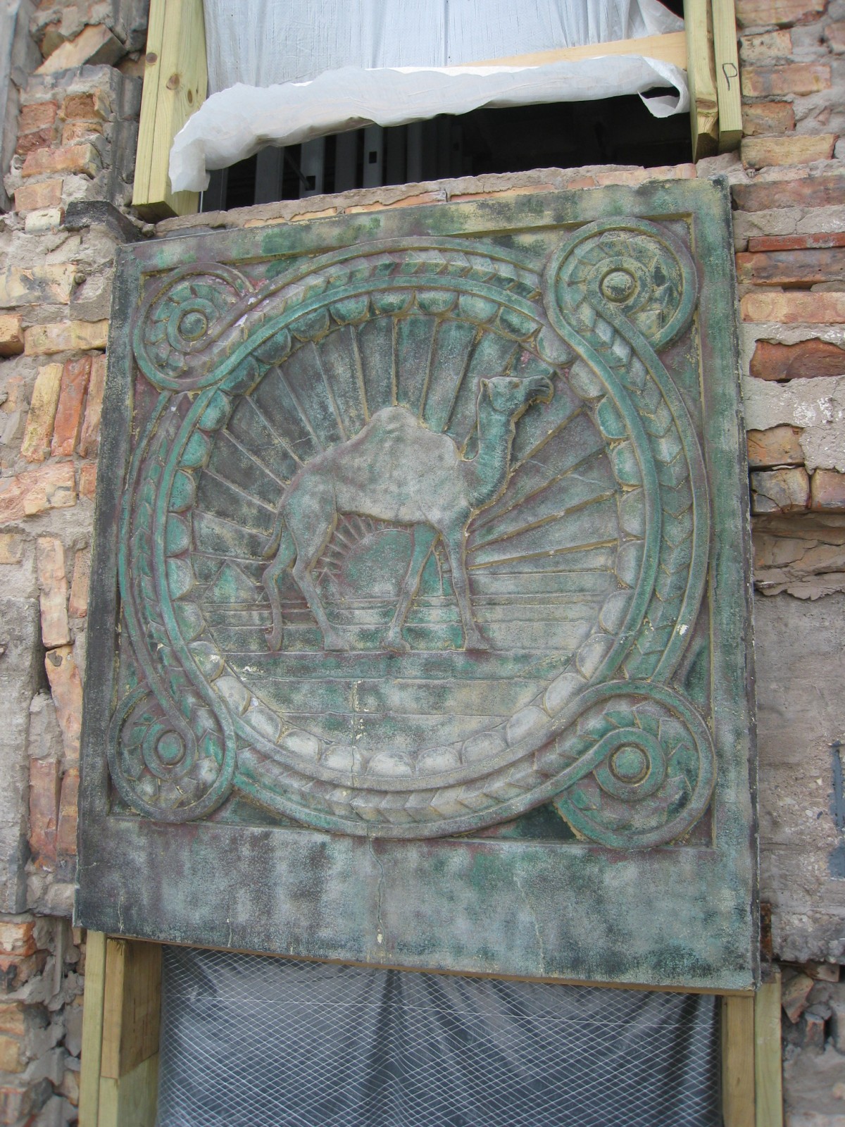 A four-day investigation of the facade revealed the limestone clad columns and piers were not properly anchored and were pulling away from the structure. The original cast stone parapet at the top of the building had been torn down and replaced with brick. In addition, the unique lead-coated copper-covered decorative precast spandrel panels, featuring the distinctive Hump camel, had been painted over. Consulting historic documents and photos, WJE developed repair documents for restoration of the building's exterior and provided construction administration services throughout the restoration effort. All limestone panels above the third floor were removed and reset, and the original cast stone parapet was reconstructed based on historic photographs. Significantly deteriorated cast stone spandrel panels were replaced, and all the spandrel panels were restored to mimic the original patina copper finish.