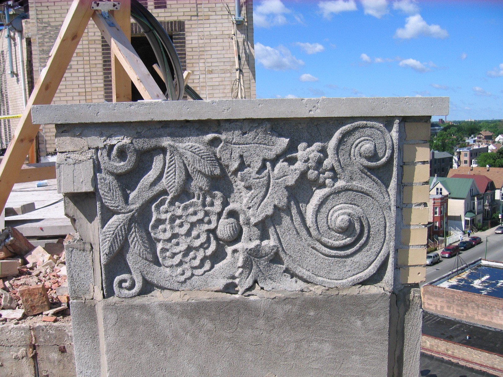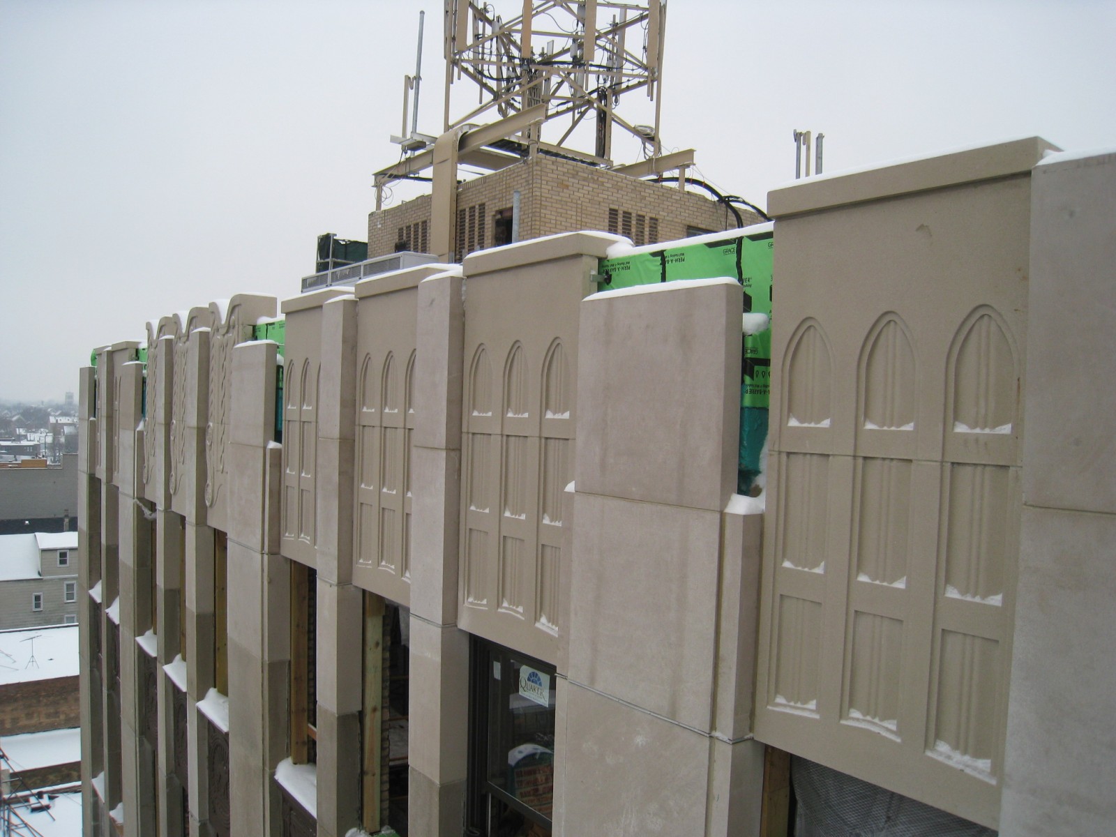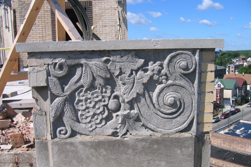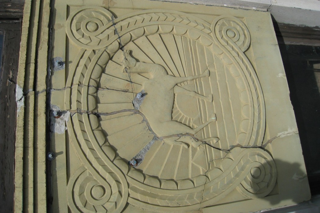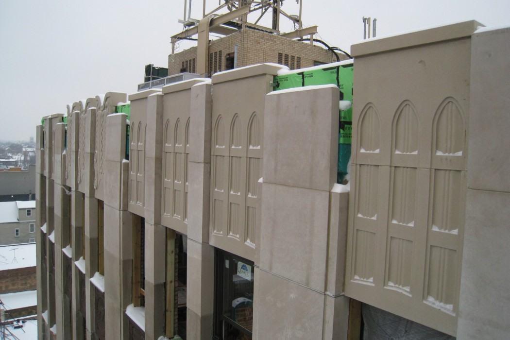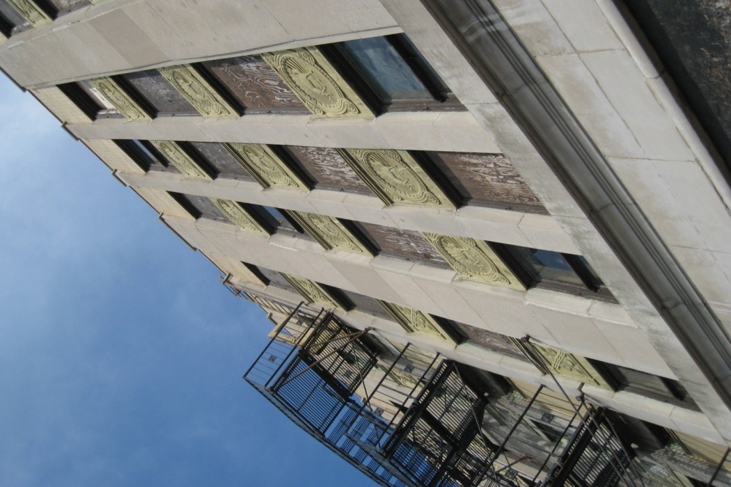 A four-day investigation of the facade revealed the limestone clad columns and piers were not properly anchored and were pulling away from the structure. The original cast stone parapet at the top of the building had been torn down and replaced with brick. In addition, the unique lead-coated copper-covered decorative precast spandrel panels, featuring the distinctive Hump camel, had been painted over. Consulting historic documents and photos, WJE developed repair documents for restoration of the building's exterior and provided construction administration services throughout the restoration effort. All limestone panels above the third floor were removed and reset, and the original cast stone parapet was reconstructed based on historic photographs. Significantly deteriorated cast stone spandrel panels were replaced, and all the spandrel panels were restored to mimic the original patina copper finish.