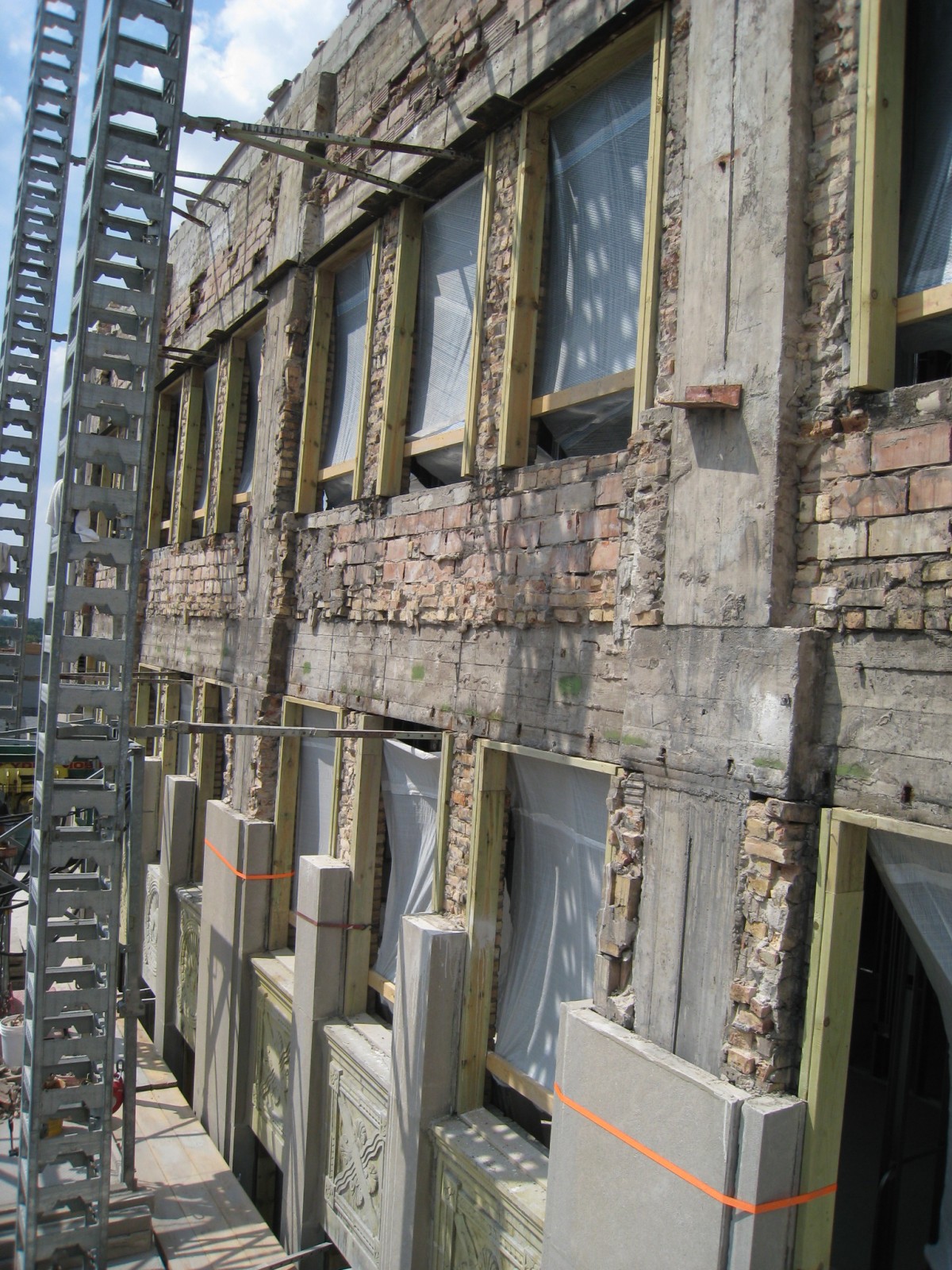 In 2009, Brinshore Development acquired the property, seeking to reappropriate the space as affordable living and working residences for local artists and families. Vacant and neglected for almost two decades, the interior spaces and exterior facades required major restoration and upgrades. Hartshorne Plunkard Architecture (HPA) was selected to design the interior restoration, while WJE served as the exterior facade consultant.