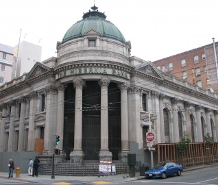 Located in the Mid-Market district, the building was originally constructed in 1892; a seamless addition to the west of the original building was constructed in 1904—1905. The majority of the interior space comprises a vast banking hall with highly detailed and painted plaster and stone finishes throughout. The primary building structure is constructed of massive unreinforced granite and brick masonry walls with its roof supported by steel trusses. The roof diaphragm is perforated by huge skylights. The structure survived the shaking from the 1906 earthquake essentially intact but sustained significant fire damage to the interior and some of the granite exterior during the subsequent conflagration that consumed much of the city.