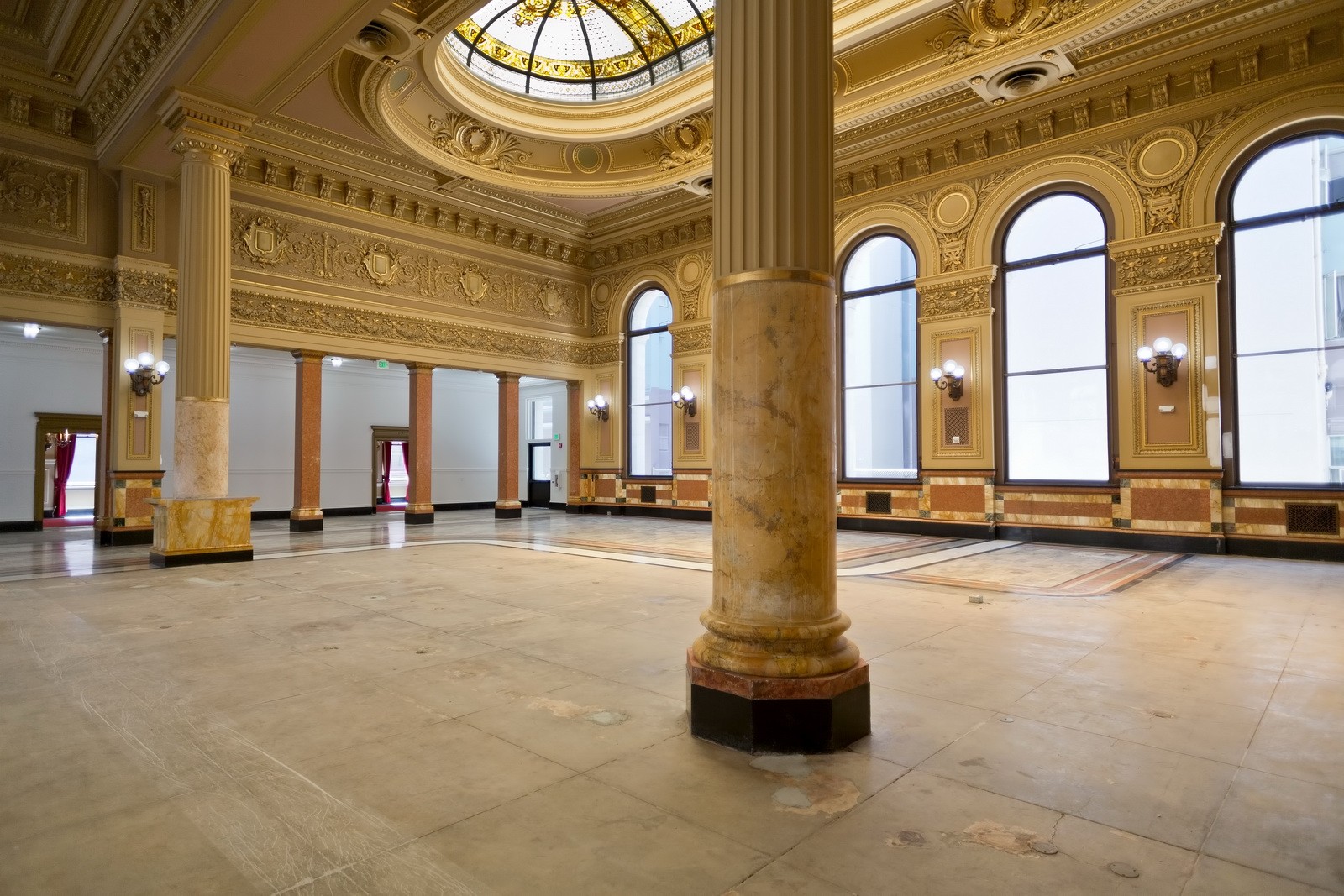 After being abandoned for more than a decade, this City of San Francisco Landmark was purchased by an entity dedicated to restoring the building to its former glory and to adapting it for assembly occupancy, which required that the unreinforced masonry structure satisfy applicable present-day seismic regulations. The vast majority of the interior and exterior of the building was rated as "very significant" by the historic structures report, which greatly limited the locations where structural interventions could occur.