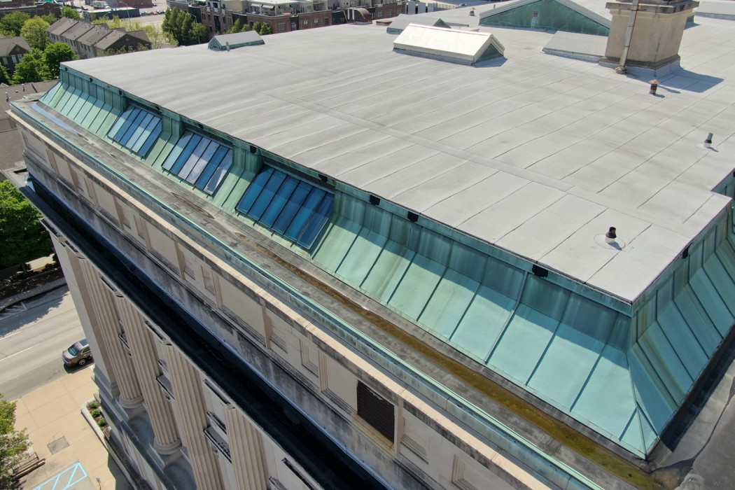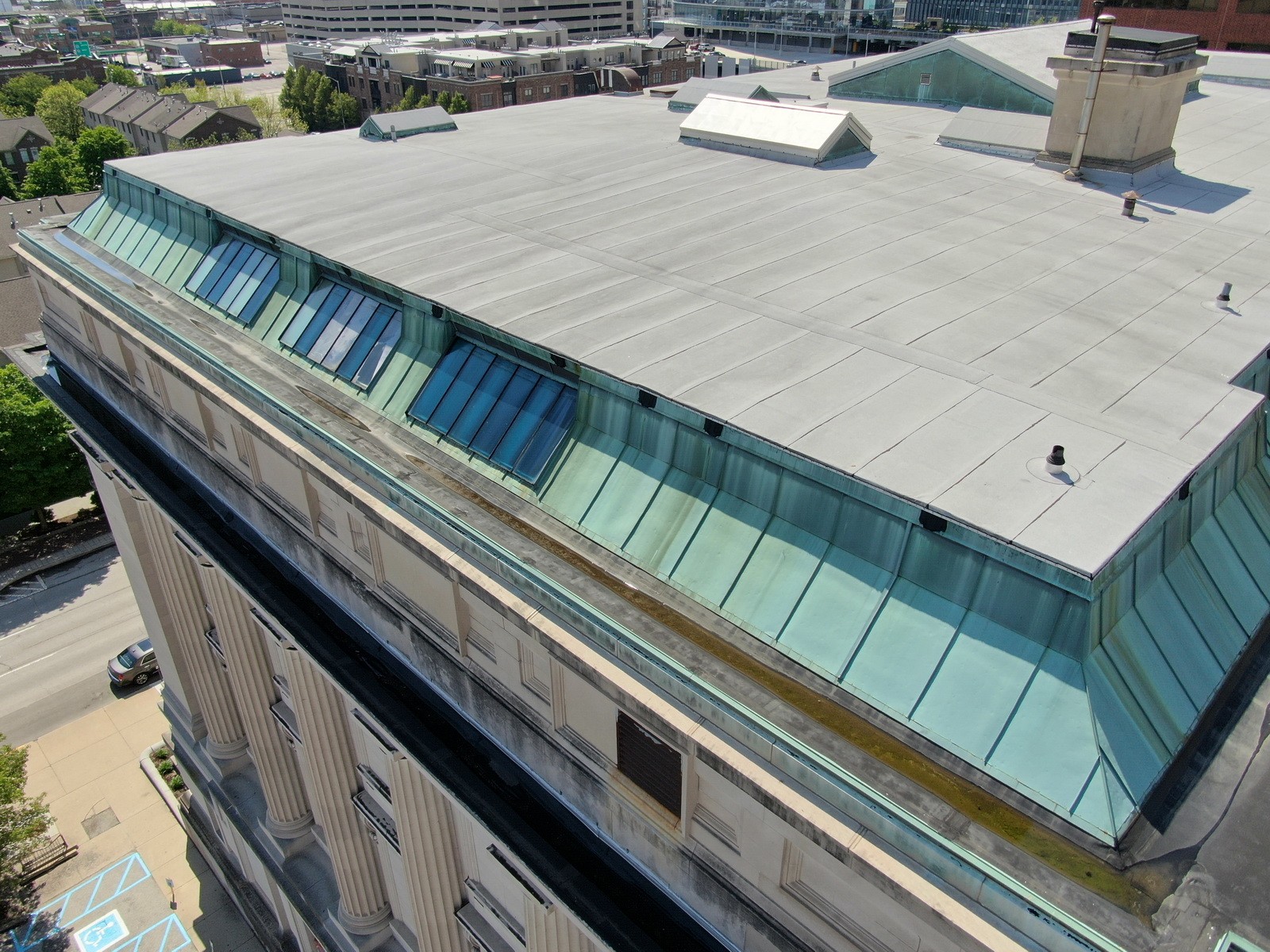 Dedicated in 1909, the Indianapolis Old City Hall is a four-story, load-bearing masonry and steel structure with a limestone facade. The building served as the Indianapolis City Hall from its dedication until 1962. After 1962, Old City Hall served multiple purposes, including as the Indiana State Museum, but most recently sat vacant for multiple years prior to WJE’s assessment. The building has multiple roof areas, including modified bitumen, standing seam copper, and EPDM. During its use as a state museum, most of the window openings were blocked in with limestone masonry. The building is currently listed in the National Register of Historic Places (NHRP).
