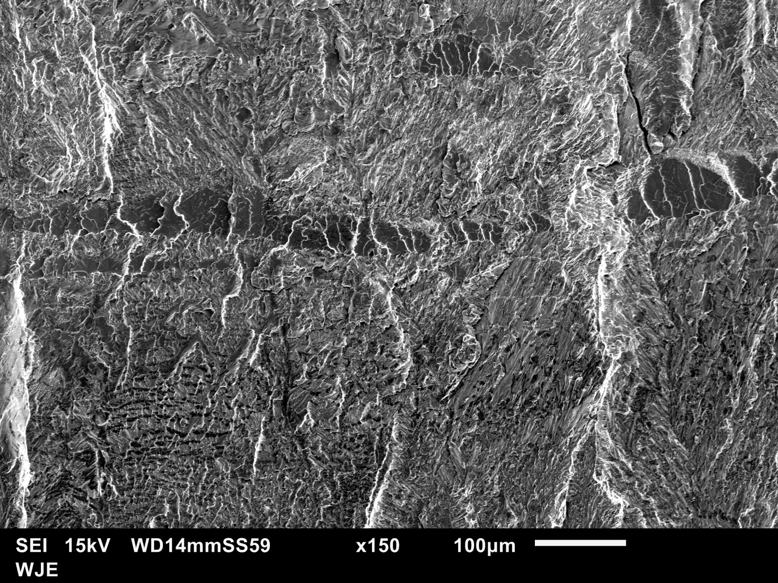 Laboratory observations indicated that the pipes did not exhibit significant corrosion or any indication of an environmental cracking mechanism. The fracture characteristics were consistent with a fatigue fracture mode. The chemical composition and microstructure of the components met the material requirements, with no anomalies detected that could have contributed to the fractures. Small cracks initiated on the inner-diameter surface at the root of the weld; this is typically a result of increased localized stress due to the geometry. WJE recommended a review of the pipe system and supports, including monitoring for vibration in the pipe circuit and review of inspection plans for similar piping circuits.