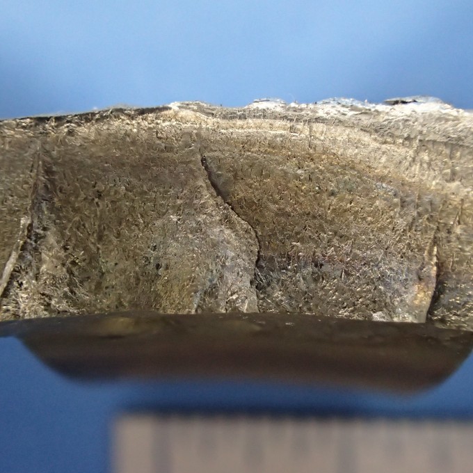 The visual examination identified the cracks for subsequent sectioning to expose the fracture surfaces and create metallographic samples. High-magnification images of the fracture surfaces were obtained using a scanning electron microscope. Chemical analysis of the reducer and flange was conducted using optical emission spectrometry to identify weld and base-metal composition. Select weld fracture samples were longitudinally sectioned, mounted, and polished for metallographic observations. Microhardness testing was performed on the metallographically prepared cross-sections: the base metal, the heat-affected zone, and the weld.