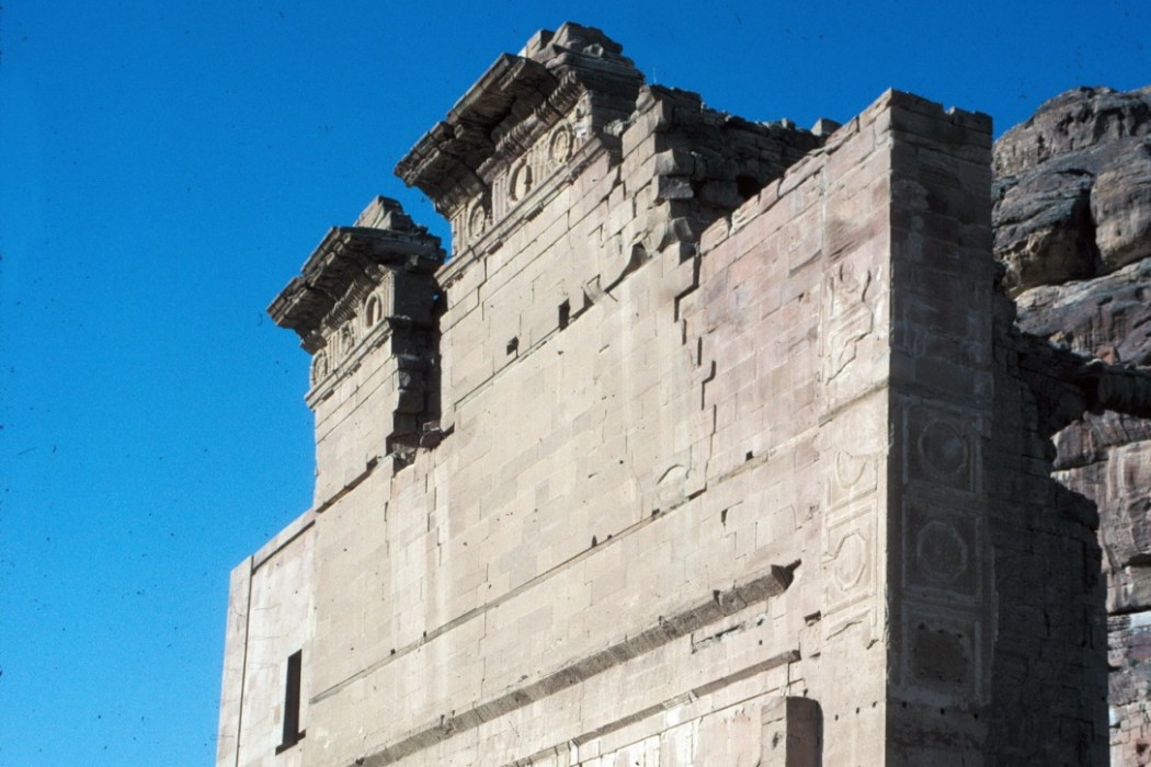 The Qasr al-Bint Monument is located in the UNESCO World Heritage site of Petra in the Hashemite Kingdom of Jordan. The monument is believed to be a Nabatean Temple that was dedicated to Dusares, the sun god, and constructed in 4 BCE. The Nabateans were pre-Islamic Semites. It is the only remaining free standing masonry structure in Petra and may be the most intact Nebatean Temple in existence. The monument was damaged by the earthquakes of 233 AD, 362 AD, and 747 AD. The City of Petra subsequently fell into obscurity and was "lost" to the western world. Petra was "rediscovered" by Sir Richard Burton during his secret trip to Mecca.