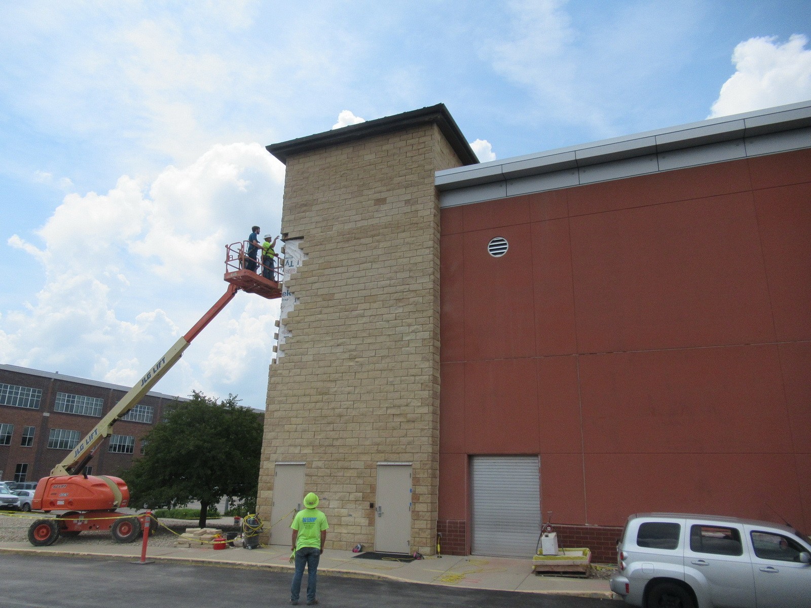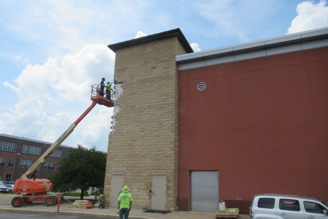 During the construction of the addition to the building, the general contractor observed displaced stone units at the southeast stair tower. Ascension Health engaged WJE’s services to investigate the cause of the displaced stone and develop repair recommendations.