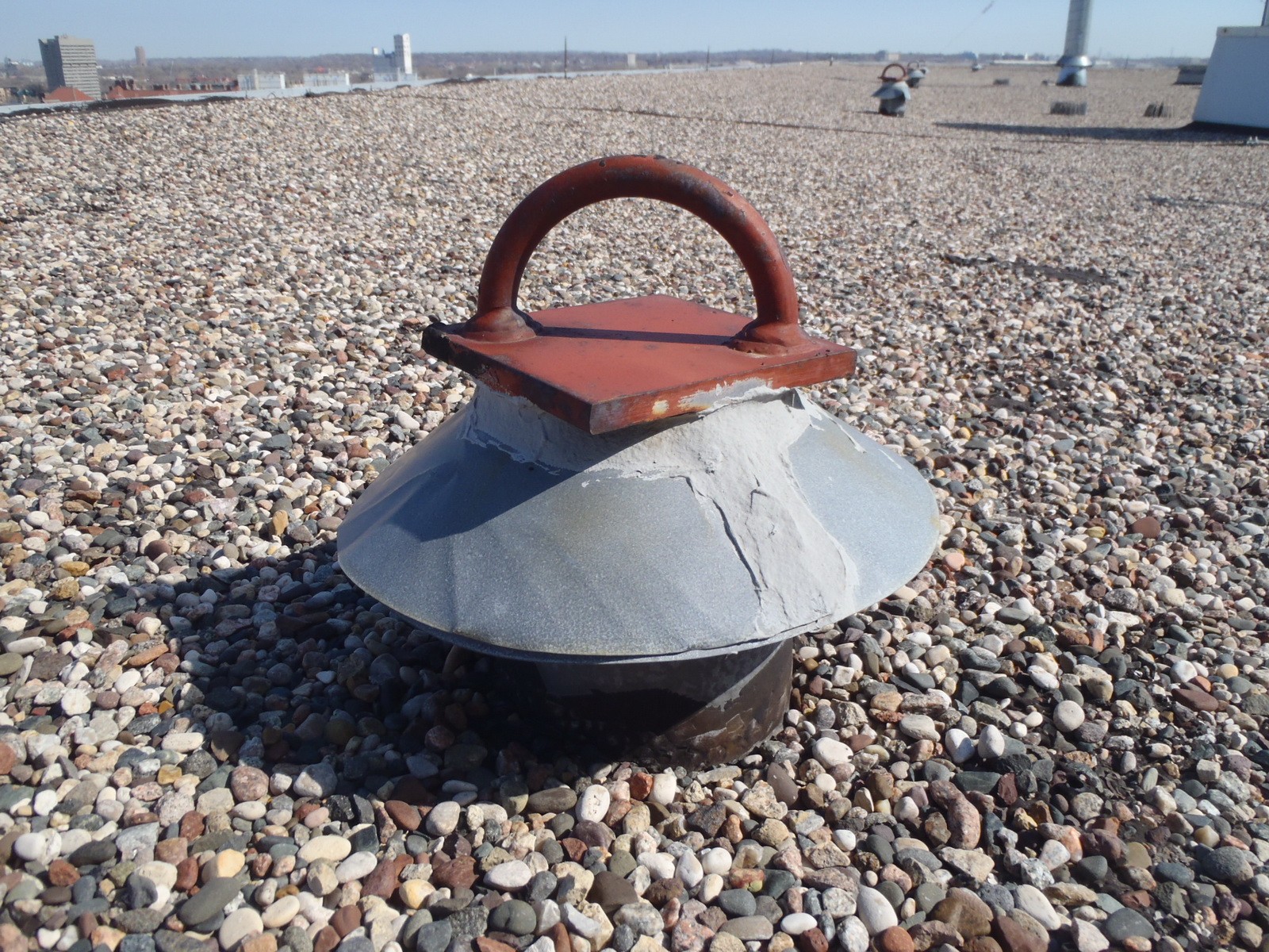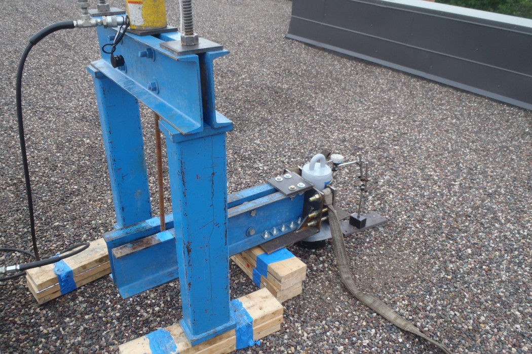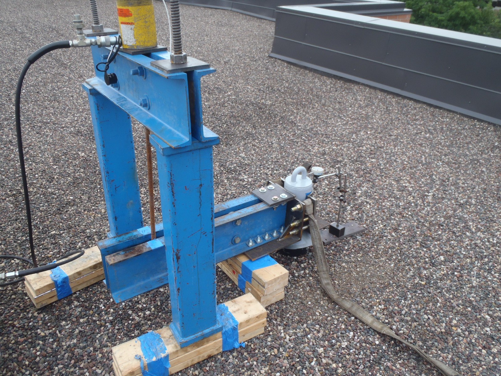 In Phase 2, WJE finalized load testing protocols for each anchor type and developed sketches of required test jigs for shop fabrication. The engineers procured materials and fabricated required test jigs. Finally, the team prepared a written report as well as a certification statement, a roof anchor plan, an exterior Inspection Form, a rope descent daily log, and anchor certification labels.